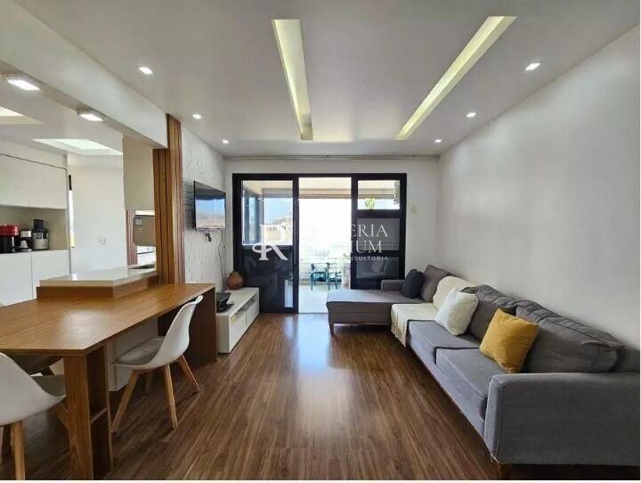 Apartamento no Condomínio Waterways – Barra da Tijuca Apartamento originalmente de 2 quartos (sendo 1 suíte), porém reformado para 3 quartos, integrando a sala e a cozinha. Conta com dependência completa de empregada, 105m² de área privativa e 2 vagas de garagem. O condomínio Waterways é um verdadeiro resort de frente para a praia (posto 6), apartamento tem vista lateral.